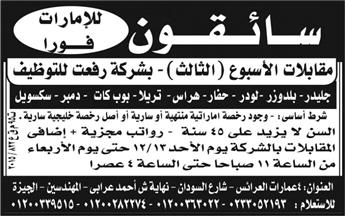 مطلوب اطباء ومبيعات وسائقين للعمل في السعودية والامارات اخبار ليل ونهار – مطلوب اطباء ومبيعات وسائقين للعمل في السعودية والامارات مجموعة من احدث الوظائف الخالية في صحف القاهرة اليوم 11/12/2015 مطلوب اطباء ومبيعات وسائقين والعديد من الوظائف الاخرى للعمل في السعودية والامارات. الزوار يشاهدون الآن:فرص عمل في السعودية .. الراتب والمميزات وطريقة التقديمفرص عمل في السعودية براتب 2500 ريال .. شاهد المميزات…فرص عمل في السعوديةفرص عمل خالية في السعودية .. شركات .. جامعات Tags: فرص عمل في الامارات, فرص عمل في السعودية, وظائف جريدة الاهرام